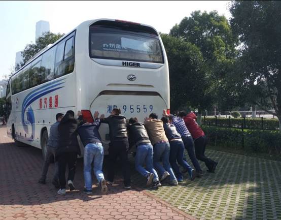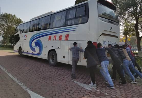 當(dāng)中還出現(xiàn)了小插曲,旅游車電瓶沒電了,總監(jiān)帶著大家一起推車!