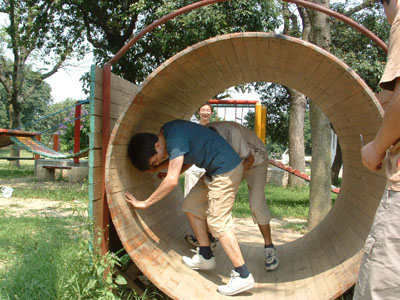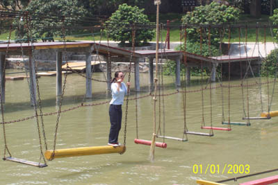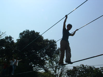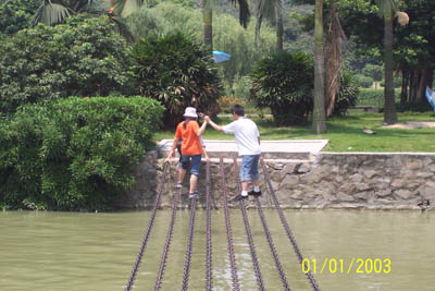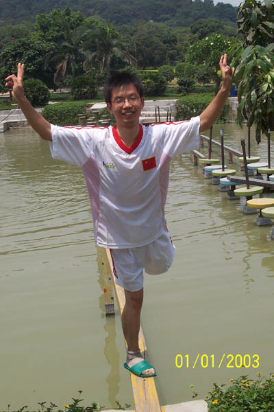 來(lái)個(gè)“金雞獨(dú)立”架勢(shì),挑戰(zhàn)自己的勇氣。