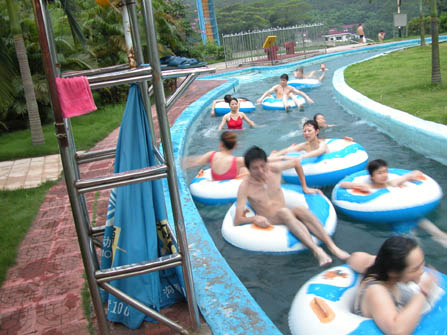 這個(gè)項(xiàng)目是一個(gè)由七七四十九轉(zhuǎn)而做成了一個(gè)小河,人坐在水圈上面,隨波慢慢的瓢流,人生美哉。大家在上面可以跟一些相識(shí)的或不相識(shí)的人一起潑水或者是玩鬧,非常的不錯(cuò)。