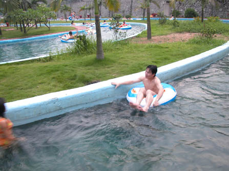 在這個(gè)項(xiàng)目中,大概隔半個(gè)小時(shí)左右就會(huì)有大概十分鐘左右的人工浪,在中心地帶,浪高大概有1米有余,雖然不能像傳說(shuō)中的那樣,可以劃板沖浪,但是坐在水圈上隨波逐流也是一翻非常舒服的顯示,在這個(gè)過(guò)程中,通常大家會(huì)和一些認(rèn)識(shí)的和不認(rèn)識(shí)的一起在中心處一起鬧哄,其樂(lè)融融,非常的不錯(cuò)。