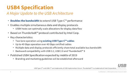 雖然USB 4獲益于雷電接口技術,但并不能保證這兩種技術能共存。今天的雷電3技術使用筆記本電腦的USB-C接口,但幾年后的USB 4端口不一定支持雷電外圍設備。雷電3是USB 4的一個可選項,這意味著設備制造商必須明確雷電技術的測試和認證要求。