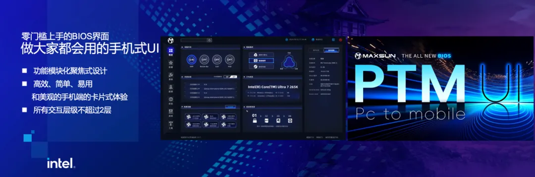 在會議上,銘瑄主板總經(jīng)理王榮還跟大家介紹了銘瑄全新的PTM UI BIOS。這款全新的BIOS達到了全方位的升級,創(chuàng)新地洞察當前移動端對用戶瀏覽習慣的影響,采用PTM設(shè)計理念(PC To Mobile),將功能模塊化聚焦式設(shè)計,所有交互層級不超過2層,解決了以往交互繁瑣的問題,使BIOS體驗兼具簡潔、高效、易用,大幅提升交互感受。
