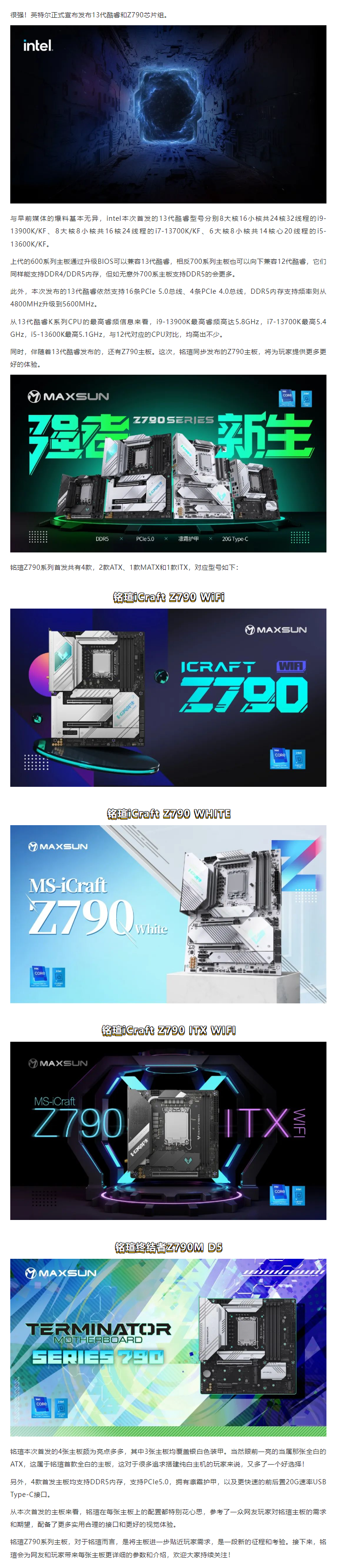 強(qiáng)者新生 英特爾13代酷睿發(fā)布,銘瑄Z790系列同步首發(fā)