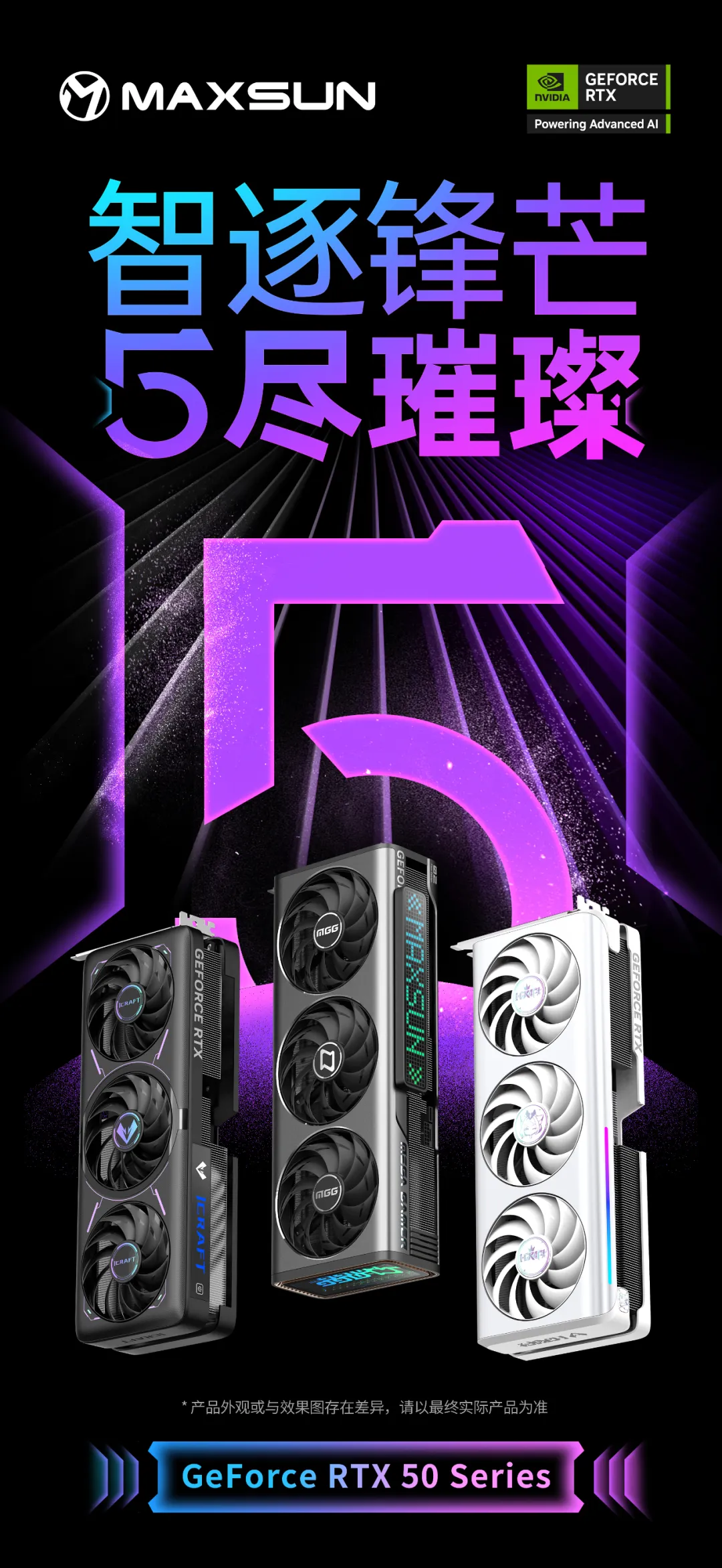 隨著新一代Blackwell架構(gòu)顯卡的發(fā)布,銘瑄也隆重揭曉全新GeForce RTX 50系列顯卡,包括MGG、iCraft璦珈、iCraft電競(jìng)之心三個(gè)系列。每個(gè)系列都獨(dú)具特色,針對(duì)各種用戶需求精心打造,從外觀設(shè)計(jì)、燈效展示、散熱效能等各方面都進(jìn)行了全面升級(jí),力求從多角度提供性能和美感的和諧體驗(yàn),全方位滿足不同用戶群體對(duì)于顯卡性能、外觀和功能的多樣化需求。讓我們一起期待銘瑄GeForce RTX 50系新品顯卡閃耀登場(chǎng),開啟全新科技之旅!