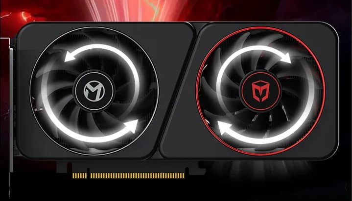MAXSUN Intel Arc B570 Milestone 10G采用雙風(fēng)扇正逆轉(zhuǎn)導(dǎo)流散熱設(shè)計,9CM FROST風(fēng)扇搭配11幅密集扇葉,風(fēng)扇旋轉(zhuǎn)方向不同,減少繞流,增加進(jìn)風(fēng)量,顯著提升散熱效能,讓顯卡在高負(fù)載下也時刻冷靜。在10分鐘烤機實測中,MAXSUN Intel Arc B570 Milestone 10G溫度低至65度。(*測試數(shù)據(jù)來源于銘瑄實驗室,基于此配置進(jìn)行測試:Motherboard-MS-Terminator B760M D4 ICE;CPU-英特爾®酷睿™i7-13700K處理器;RAM-DDR4 4000 16-16-16-36,實際性能會因硬件配置、軟件環(huán)境等多方面差異而存在變化)