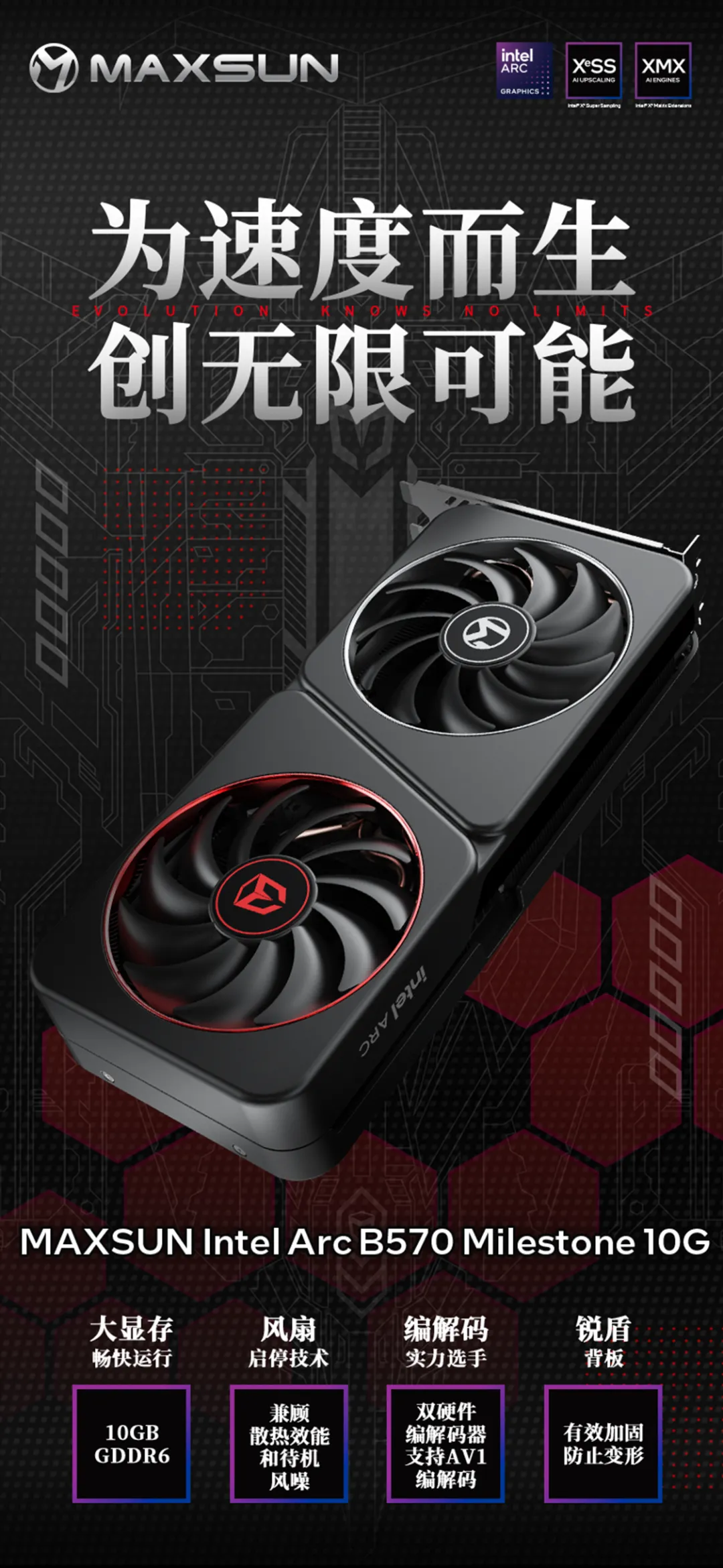 自銘瑄推出Intel Arc B580系列顯卡以來,憑著卓越的性能與品質(zhì),收獲不少用戶好評,成為不少游戲玩家和內(nèi)容創(chuàng)作者的熱門之選。今天,銘瑄正式推出全新MAXSUN Intel Arc B570 Milestone 10G顯卡,為廣大用戶提供更多元、具備性價比優(yōu)勢的選擇。